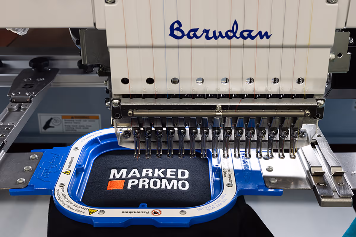 Before we start sewing, first, we “digitize” your logo, which means converting your logo into thousands of individual stitches and creating a sequence for the colors to be sewn. Next, we send the digitized file to our state-of-the-art embroidery machines by Bluetooth and thread the needles to match the color sequence. Your items are put on “hoops” and then attached to the embroidery machines and your logo is sewn at up to 1,000 stitches per minute. The result is your brand elevated by the premium perception of expertly crafted embroidery.